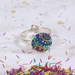 All of their pieces start by hand making the silver bezel in any of our different shapes, then we fill them with crystals, glass and stones one by one creating beautiful patterns never seen before. Some pieces have up to 600 components in them.
