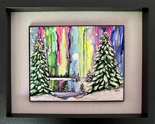 Alcohol inks are brightly colored, acid-free, dye based paints that create free flowing textures and design. They are fast drying and evaporate quickly, requiring a non-porous surface such as synthetic paper, ceramic tile, or a specially prepared canvas. This piece has been sealed with 3 coats of Lamar Varnish and UV archival protection.