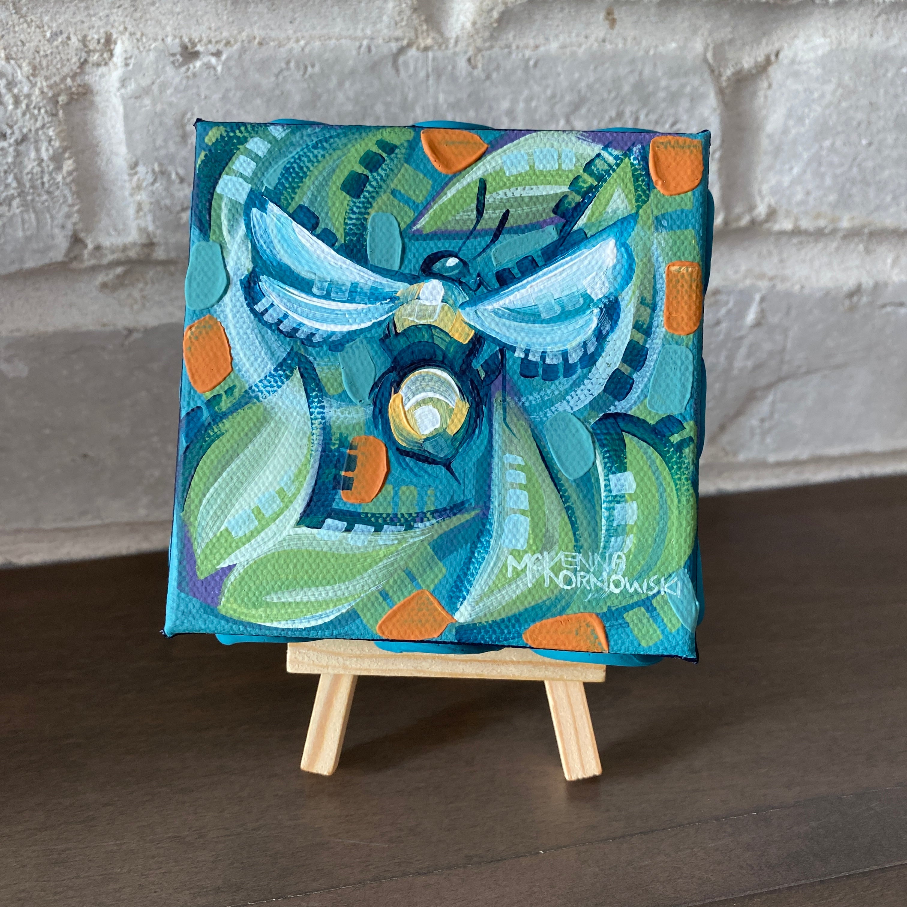 McKenna Kornowski is a mixed media painter. She lives in a little green house on 14 acres of land in Oconto, Wisconsin with her husband, her chickens, and two cats.