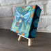 This painting can be hung on the wall or displayed on a wooden easel. It features a calming color pallet and scalloped edges.