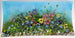 Each plate is one of kind and unique. This fused and painted glass plate features pink, purple, blue and yellow wildflowers in front of a bright blue sky.