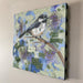 Most of her acrylic paintings contain repurposed materials such as antique lace and thrifted fabrics. These elements, along with textured mixing mediums, are what give her paintings their unique surface quality. Themes that appear in her work are oftentimes derived from quiet messages from mother nature which are at once both playful and thought provoking.