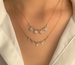 This dainty new arrival mixes two chains for a unique look! The center has bigger links that accommodates several diamond charms, including a diamond encrusted star.