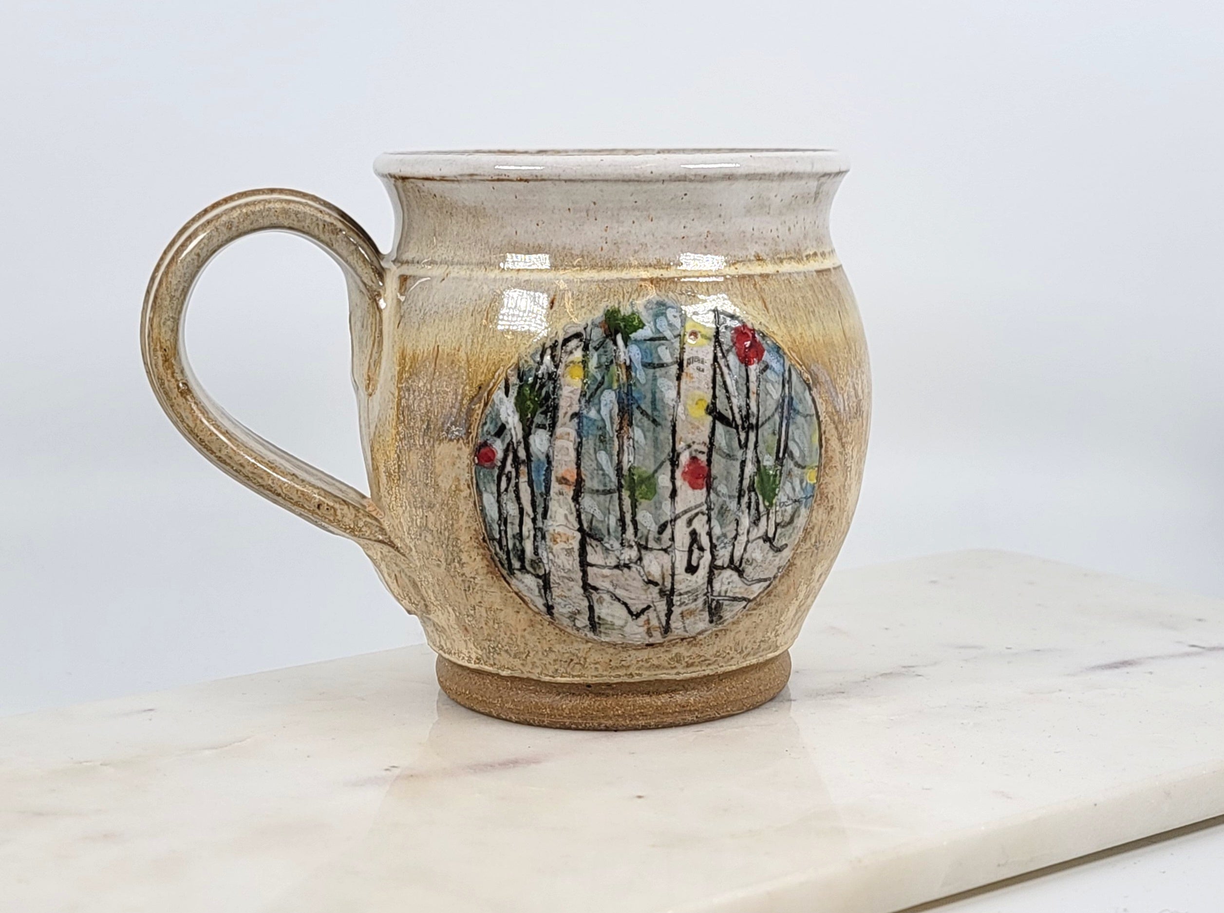 This daytime circle Christmas birch mug is sure to bring Christmas cheer to anyone who drinks from it.