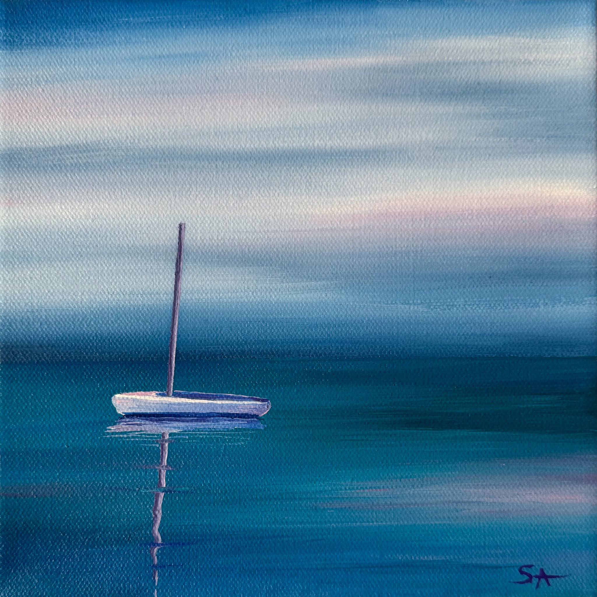 Experience the peaceful beauty of Scott Allen’s minimalist boat paintings, inspired by the calm waters of Lake Michigan. With a masterful use of open space, vivid blues, and delicate detail, Allen captures a moment of quiet reflection and serenity. His signature style blends realism with a modern, abstract sensibility—creating artwork that feels both timeless and fresh.