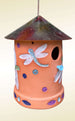 Each birdhouse is artist signed and a fully functional artwork. All entrances are sized for small birds such as wrens, finches and chickadees. Being made of terra cotta, all are impervious to attack by large birds, squirrels, or rot. Once hung, these birdhouses can remain outside year round.