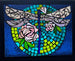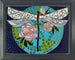 Each stained-glass mosaic is a one-of-a-kind created by artist Bonnie Nygard. Stained glass is cut into unique designs and adhered to the clear glass. This dragonfly was created using an interesting mosaic style.