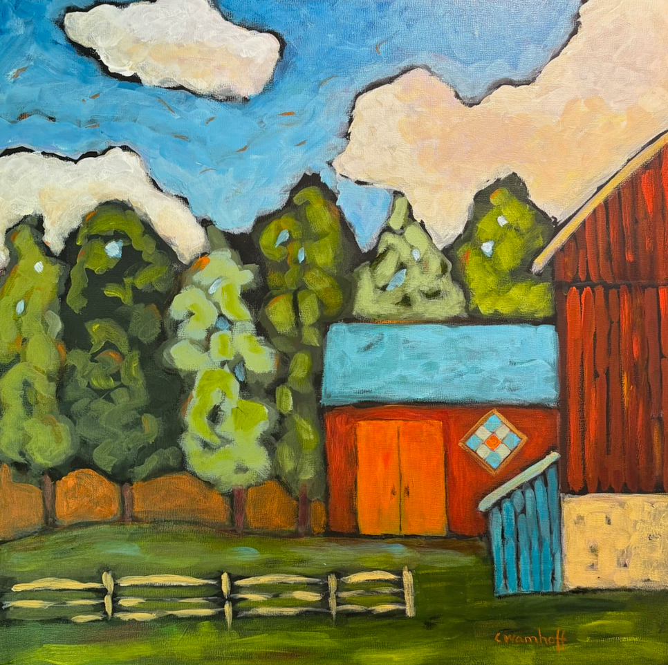 A sense of place has always been an integral part of Clarey's art. From childhood drawings of cozy houses to recreating traditional quilt patterns, she has explored the combination of shapes, patterns, and colors that evoke a warm feeling of home. She simplifies wherever possible allowing her paintings to become an abstraction of color and form. Her work is inspired by many art forms, including Japanese woodblock printing, German Expressionism, and American traditional quilting. Wamhoff loves that her paintings are often described as heartfelt and happy visions!