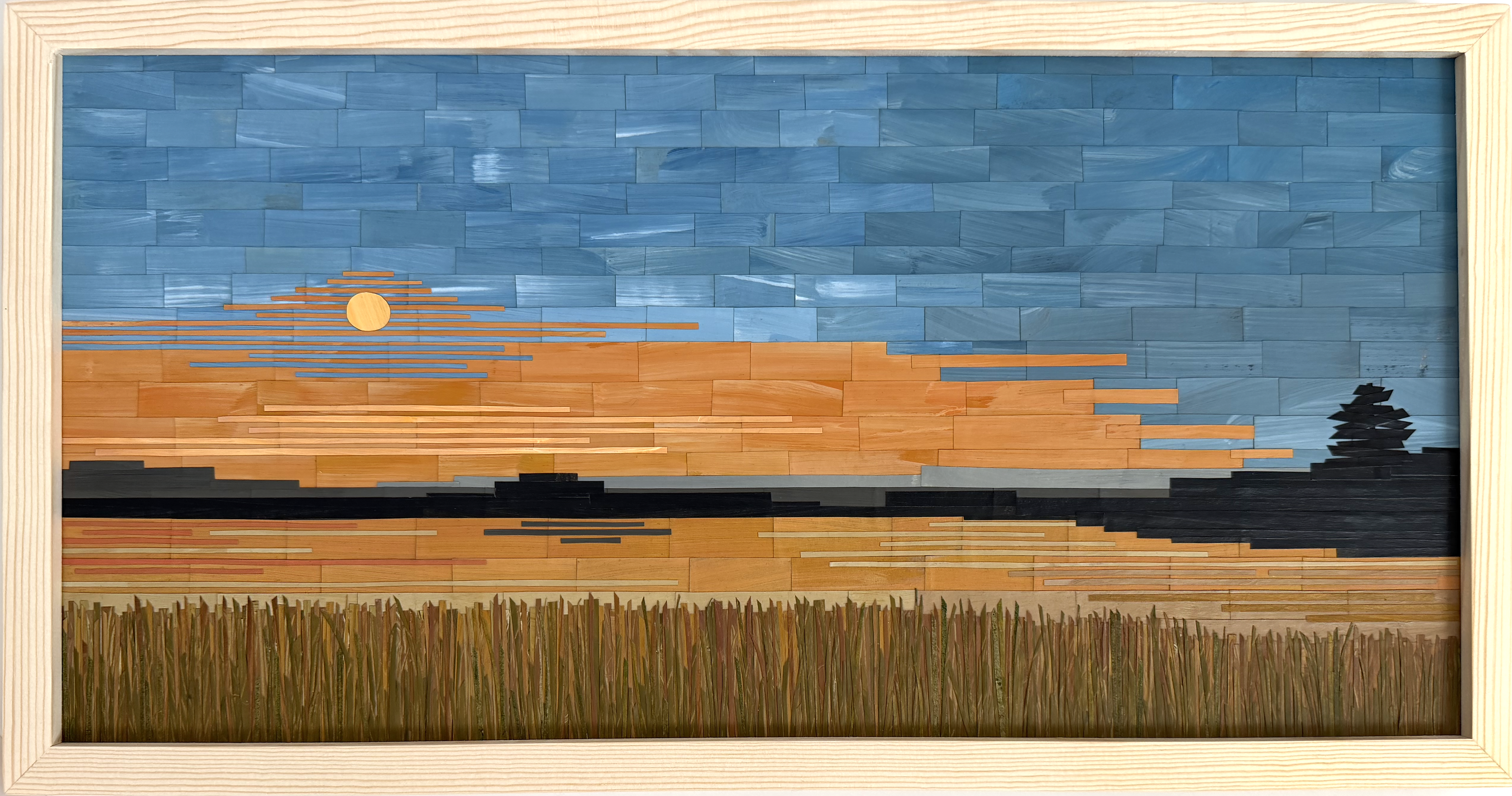Having recently returned to her Wisconsin roots after nine years in Georgia and Tennessee, Ellibee’s work reflects both the joy of coming home and the wonder of seeing familiar surroundings with new eyes. Her collages capture the beauty of the Midwest through a lens of discovery, inviting viewers to experience nature in a playful, tactile, and deeply personal way.