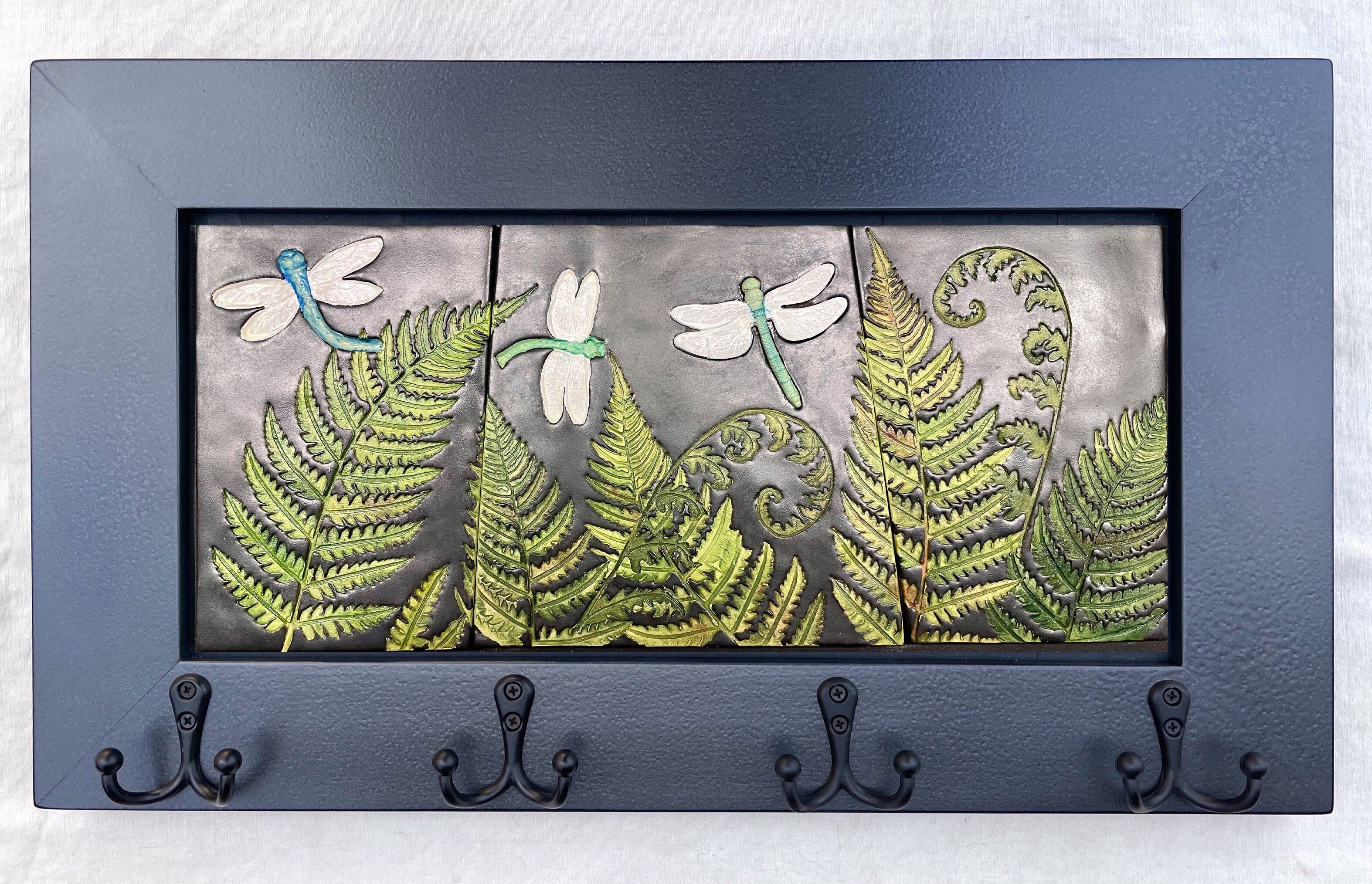 Ferns & Dragonflies Frieze Ceramic Coat Rack