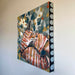 Most of her acrylic paintings contain repurposed materials such as antique lace and thrifted fabrics. These elements, along with textured mixing mediums, are what give her paintings their unique surface quality. Themes that appear in her work are oftentimes derived from quiet messages from mother nature which are at once both playful and thought provoking.