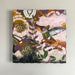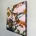 Most of her acrylic paintings contain repurposed materials such as antique lace and thrifted fabrics. These elements, along with textured mixing mediums, are what give her paintings their unique surface quality. Themes that appear in her work are oftentimes derived from quiet messages from mother nature which are at once both playful and thought provoking.