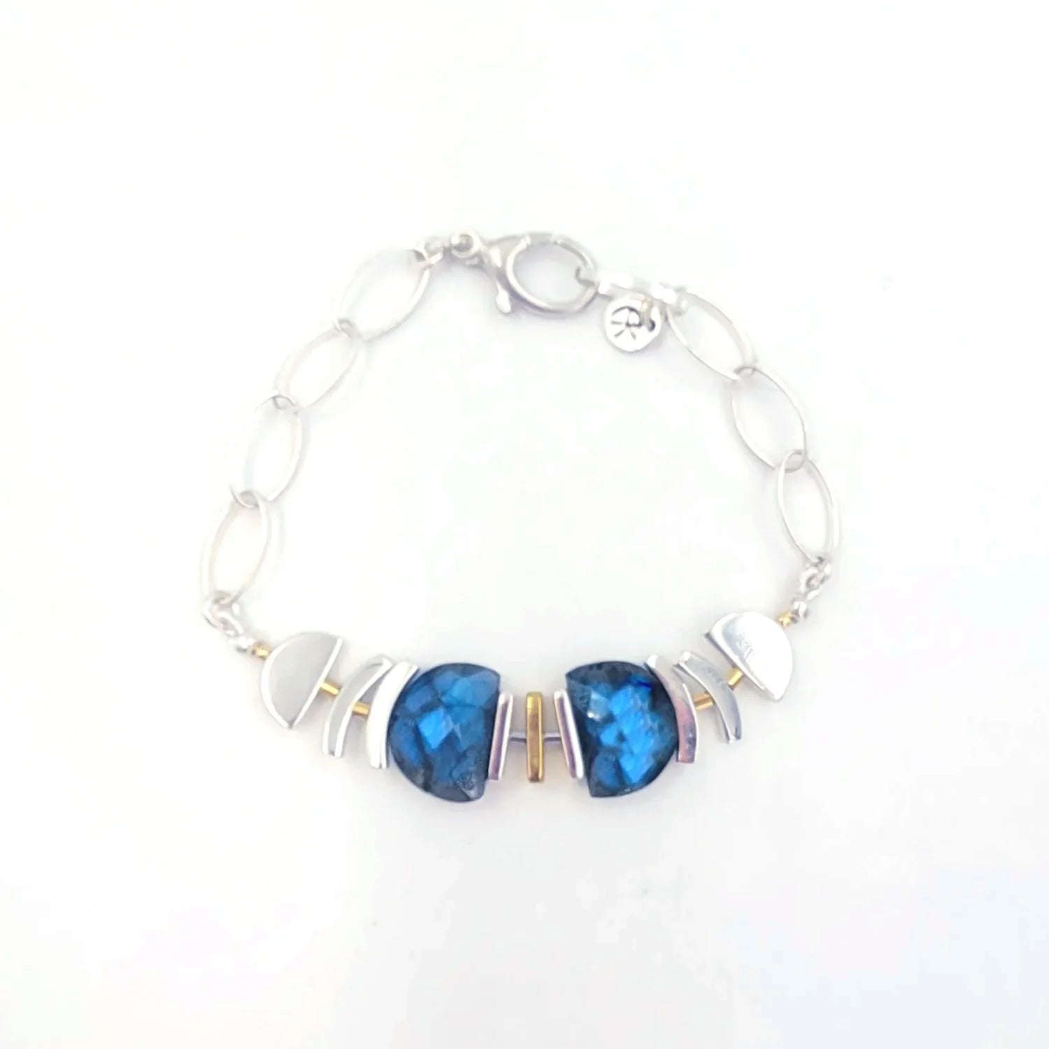 Labradorite semi-circles with Sterling Silver and 22K Gold Vermeil.