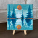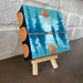 This painting can be hung on the wall or displayed on a wooden easel. It features a calming color pallet and scalloped edges.