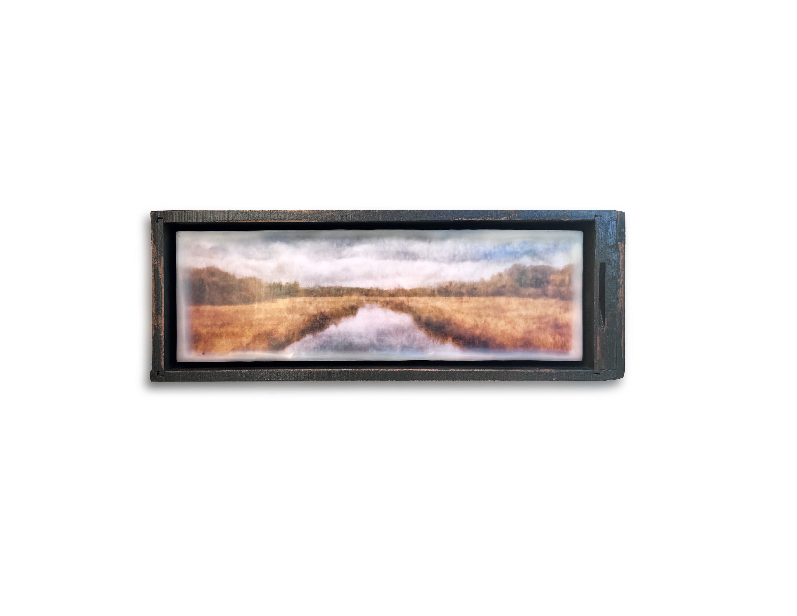 Randy & Lisa Lee reside in the rural landscape of NW WI, along with their 5 dogs, 7 cats, 3 cows and small flock of chickens. They are photographers who favor images that are simple in nature, yet meant to provoke feelings, emotions, and fond memories. Different camera work, editing techniques and textures are used to help bring forth this moody style. All images are edited with an encaustic layer in mind that is physically fused to the images before framing. This adds even more texture, depth and added interest to the overall image. Reclaimed and salvaged materials are then used to not only frame the images, but to create a piece of art. What can seem like an ugly, but worn mess becomes something of reborn beauty, the meeting of old to new. The patina and aged charm of the wood and metal, the textures, bubbles, and unknown ways of the wax makes each piece truly unique and a one-of-a-kind work of art.