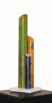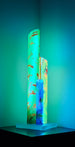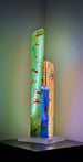 The concept of a 360 degree painting intrigued Ray Zovar but had it's challenges. A cylindrical painting would be fascinating, but the biggest issue was the size of the cylinder in relation to an abstract expressionist composition: the viewer only sees half of the painting at a time. This made it critical to assure compositional continuity, to maintain a relationship with every viewing angle. Zovar wanted his creation to present a new painting with each step around it. He first tried using sunlight to infuse life into the painting. Then, he tried using a base light, which added luminosity. Finally, he incorporated RGB LED strip lights within each piece; that changed the painting's composition. The result is a 260 degree illusionary, abstract, one-of-a-kind, interplay of color and light. Remote-controlled LEDs change the look, color, and intensity of the piece at your whim. The light can be brighter or darker and change colors faster or slower.