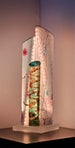 The concept of a 360 degree painting intrigued Ray Zovar but had it's challenges. A cylindrical painting would be fascinating, but the biggest issue was the size of the cylinder in relation to an abstract expressionist composition: the viewer only sees half of the painting at a time. This made it critical to assure compositional continuity, to maintain a relationship with every viewing angle. Zovar wanted his creation to present a new painting with each step around it. He first tried using sunlight to infuse life into the painting. Then, he tried using a base light, which added luminosity. Finally, he incorporated RGB LED strip lights within each piece; that changed the painting's composition. The result is a 260 degree illusionary, abstract, one-of-a-kind, interplay of color and light. Remote-controlled LEDs change the look, color, and intensity of the piece at your whim. The light can be brighter or darker and change colors faster or slower.