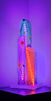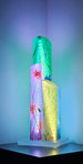 The concept of a 360 degree painting intrigued Ray Zovar but had it's challenges. A cylindrical painting would be fascinating, but the biggest issue was the size of the cylinder in relation to an abstract expressionist composition: the viewer only sees half of the painting at a time. This made it critical to assure compositional continuity, to maintain a relationship with every viewing angle. Zovar wanted his creation to present a new painting with each step around it. He first tried using sunlight to infuse life into the painting. Then, he tried using a base light, which added luminosity. Finally, he incorporated RGB LED strip lights within each piece; that changed the painting's composition. The result is a 260 degree illusionary, abstract, one-of-a-kind, interplay of color and light. Remote-controlled LEDs change the look, color, and intensity of the piece at your whim. The light can be brighter or darker and change colors faster or slower.