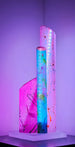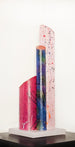 The concept of a 360 degree painting intrigued Ray Zovar but had it's challenges. A cylindrical painting would be fascinating, but the biggest issue was the size of the cylinder in relation to an abstract expressionist composition: the viewer only sees half of the painting at a time. This made it critical to assure compositional continuity, to maintain a relationship with every viewing angle. Zovar wanted his creation to present a new painting with each step around it. He first tried using sunlight to infuse life into the painting. Then, he tried using a base light, which added luminosity. Finally, he incorporated RGB LED strip lights within each piece; that changed the painting's composition. The result is a 260 degree illusionary, abstract, one-of-a-kind, interplay of color and light. Remote-controlled LEDs change the look, color, and intensity of the piece at your whim. The light can be brighter or darker and change colors faster or slower.