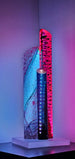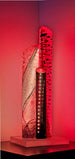 The concept of a 360 degree painting intrigued Ray Zovar but had it's challenges. A cylindrical painting would be fascinating, but the biggest issue was the size of the cylinder in relation to an abstract expressionist composition: the viewer only sees half of the painting at a time. This made it critical to assure compositional continuity, to maintain a relationship with every viewing angle. Zovar wanted his creation to present a new painting with each step around it. He first tried using sunlight to infuse life into the painting. Then, he tried using a base light, which added luminosity. Finally, he incorporated RGB LED strip lights within each piece; that changed the painting's composition. The result is a 260 degree illusionary, abstract, one-of-a-kind, interplay of color and light. Remote-controlled LEDs change the look, color, and intensity of the piece at your whim. The light can be brighter or darker and change colors faster or slower.