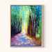 'Morning Light Path' is an original oil painting by Kinga E. Vnuk. This piece captures the serene beauty of the morning light at Peninsula State Park in Door County, Wisconsin, reflecting Vnuk's deep appreciation for the area's natural landscapes. The painting is available for purchase and comes framed, ready to enhance any art collection.