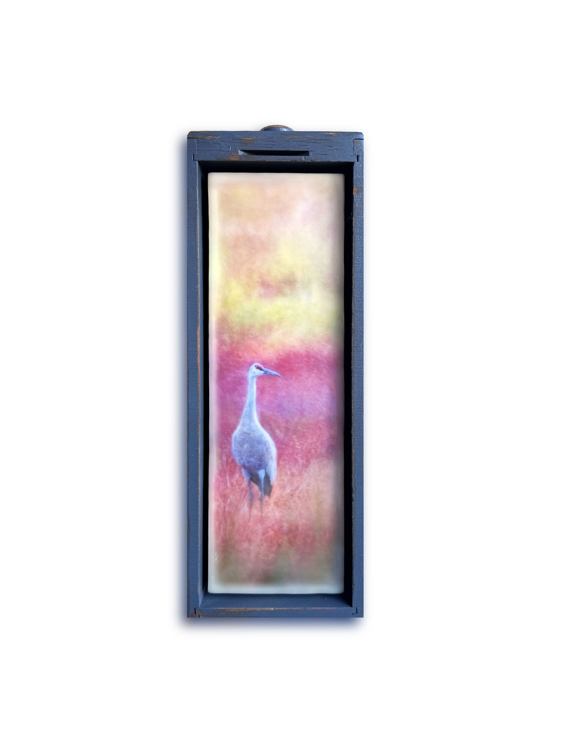 Encaustic photography is a technique that uses beeswax and damar resin to protect a photograph. It adds mystery, texture and an ethereal feel. Other items can be incorporated such as encaustic paints, pastels, oil paints, found items, texture, or stencils to create a mixed media piece. Images can be printed on different types of paper and embedded into the wax or burnished over the top layer of wax. The “caustic” part of the term indicates that heat is used to melt and blend the layers of wax into a unified piece.