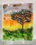 The tree is hand sculpted by the artist using powdered glass. The tree, once formed is cured and dried. Then the composition of the tree, flowers, and birds are incorporated into the final scene. The result: a snapshot of a beautiful sunset with birds enjoying their resting spot.