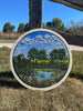 A magical landscape exemplifying the feeling of what Door County looks like. An acrylic painting with rhythm to the sky and texture to the ground. Mary White has experimented with her acrylics by adding a gel medium to create peaks of color, a hallmark of her style.