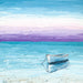 Purple Sky features a solitary boat gently floating on still waters, evoking feelings of calm, freedom, and connection to nature. The rich backgrounds and subtle reflections invite viewers into a meditative, dreamlike world.