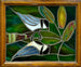 Each Stained Glass Mosaic is one-of-a-kind created by Bonnie Nygard. Using recycled windows, stained glass is cut into unique designs and adhered to the window pane. This chickadee stepped into the shallows for a sip of water, only to be transfixed by her own reflection.