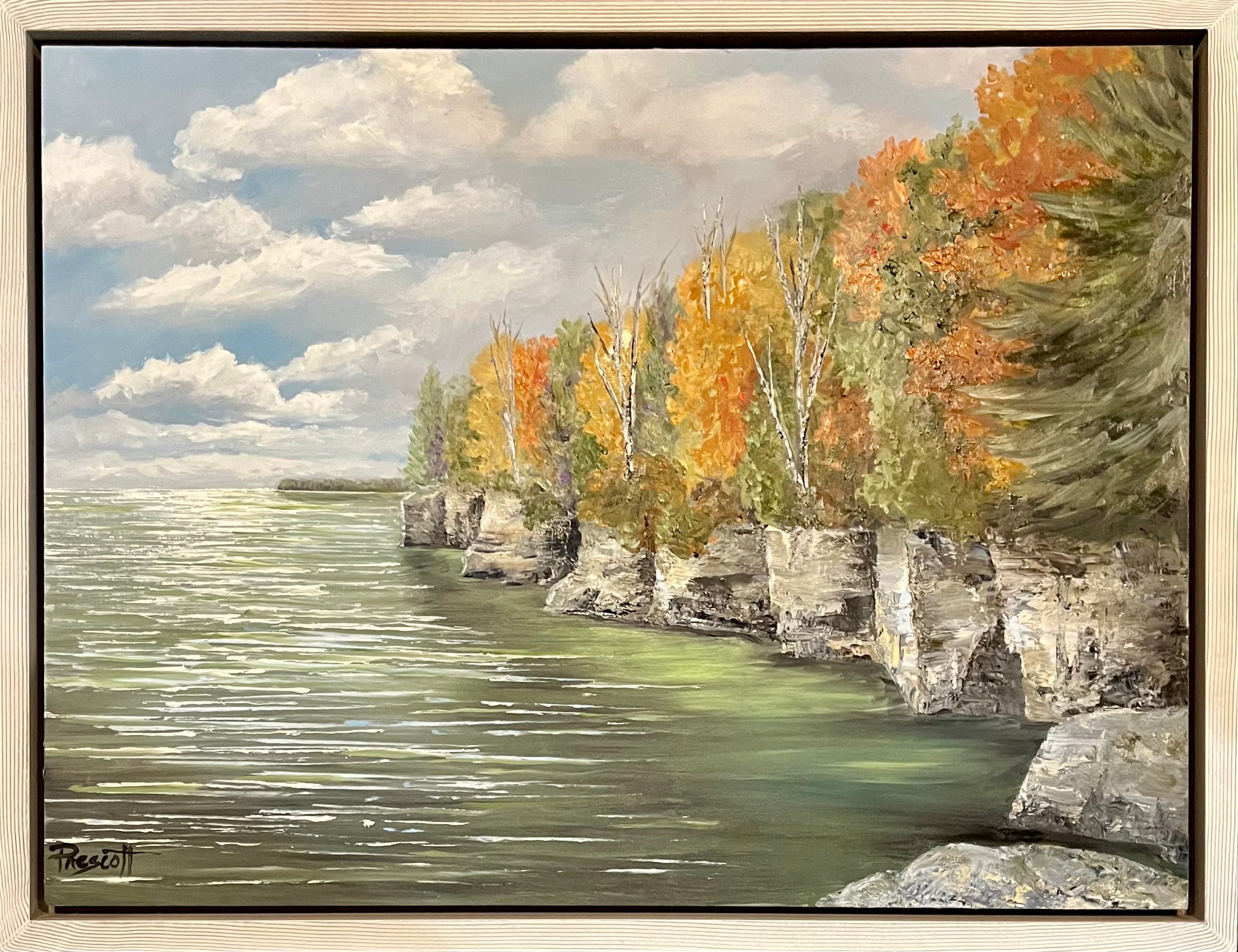 With a BFA in Industrial Design from the University of Illinois, Margaret’s career began as a museum and trade show exhibit designer in the Chicago area. She opened Prescott Art Studio in 2005 specializing in portraiture including architecture, people, and pets. Moving to Fish Creek in 2020 ignited her passion for oil and cold wax landscapes and other Door County inspired subjects. Her style is a combination of realism and expressionism, using palette knife, spatula, and brush.