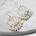 These sterling silver earrings feature a seed pearl cluster that sits on a sterling silver circle and hangs from a sterling silver french hook ear wire.