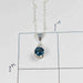 This sterling silver necklace features a blue topaz that was set in sterling silver by Angela Olson Luberger. The pendant hangs from 16" - 18" adjustable sterling silver chain.