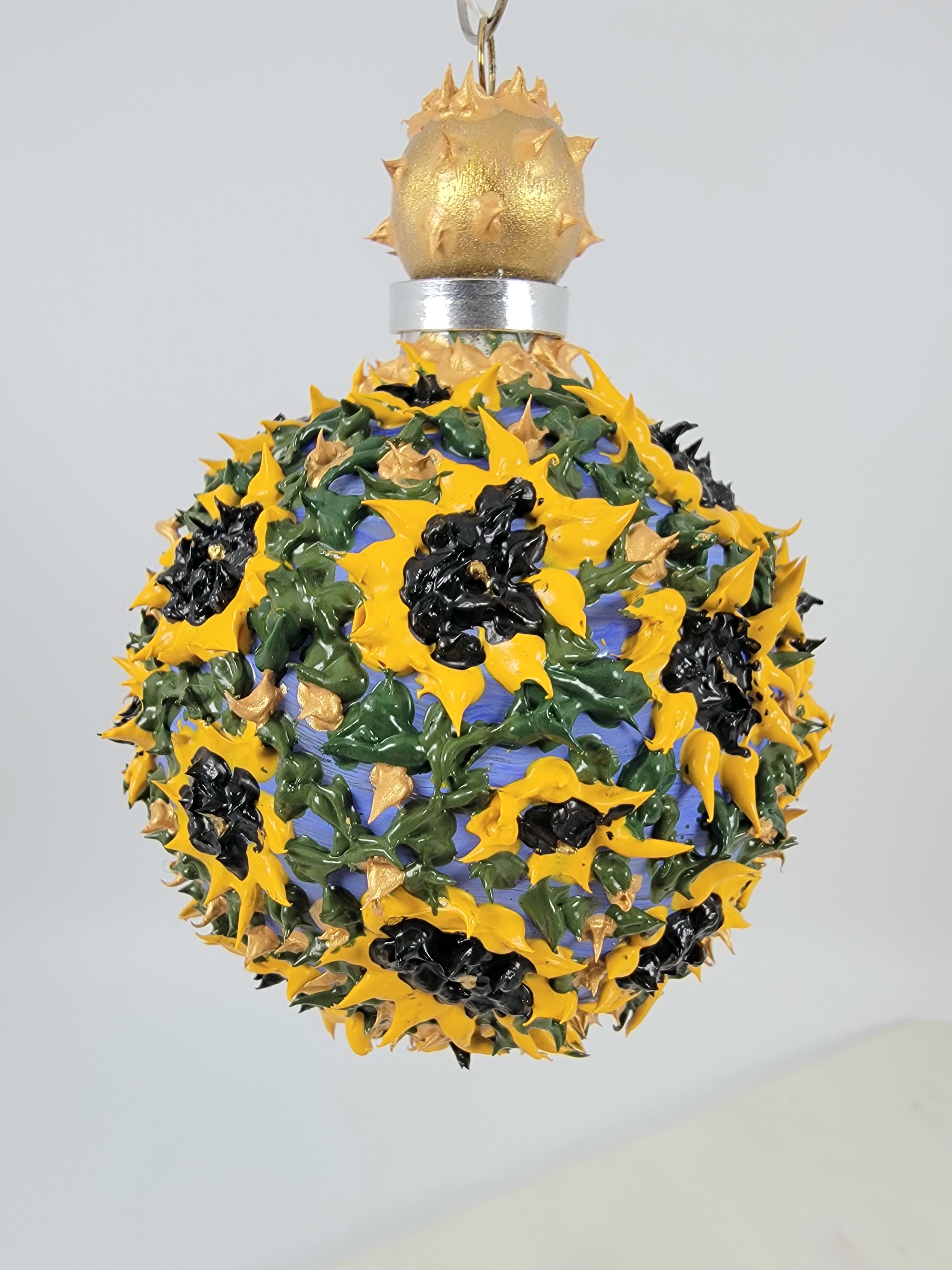 This handcrafted ornament will make a statement on a holiday tree, or keep it on an ornament stand for year-round enjoyment. The playful peaks of paint make this a textural wonder.