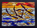 Each stained-glass mosaic is a one-of-a-kind created by artist Bonnie Nygard. Stained glass is cut into unique designs and adhered to the clear glass. These birds are flying home as the brilliant sun sets over the water.