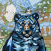 Most of her acrylic paintings contain repurposed materials such as antique lace and thrifted fabrics. These elements, along with textured mixing mediums, are what give her paintings their unique surface quality. Themes that appear in her work are oftentimes derived from quiet messages from mother nature which are at once both playful and thought provoking.