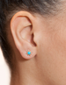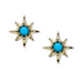 Vibrant gemstones are encrusted in a unique micro golden setting inspired by a starburst's silhouette. These dainty earrings are elegant, unique, and perfect for everyday wear.